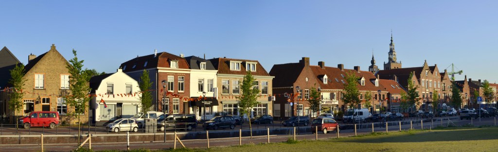 De panden langs de recentelijk weer open gegraven haven van Zeverbergen. Dit zijn 5 afzonderlijks foto’s aan elkaar “gestitcht” tot een panorama.