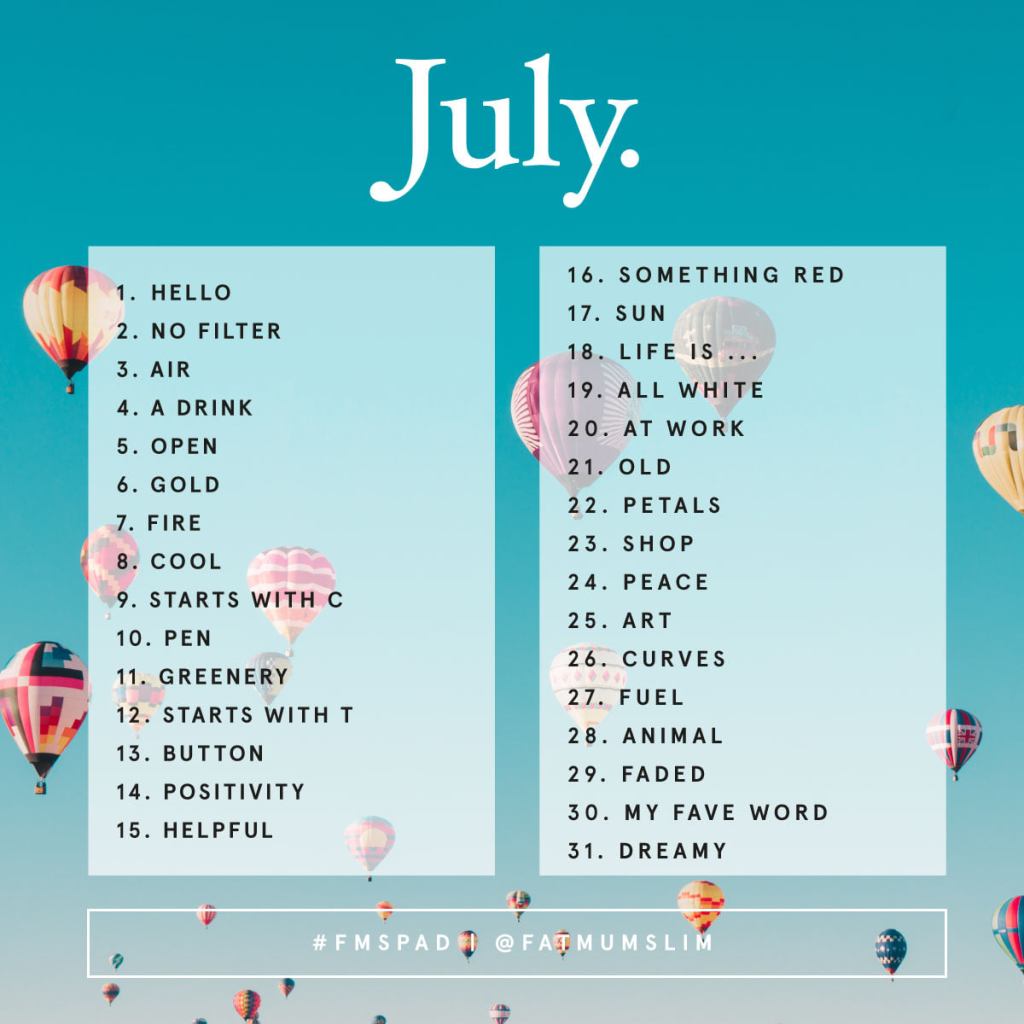 Sinds 10 mei doe ik mee aan de Photo a day van Fat mum slim. Iedere dag een foto over steeds een heel ander thema. Op dit blog post ik mijn maandelijks mijn inzendingen waarbij ik begin met een overzicht van de opdrachten van die maand. De foto’s deel ik uiteraard ook in de #FMSPAD Facebook groep. Hier vind je de blogposts met de foto’s van mei en juni.