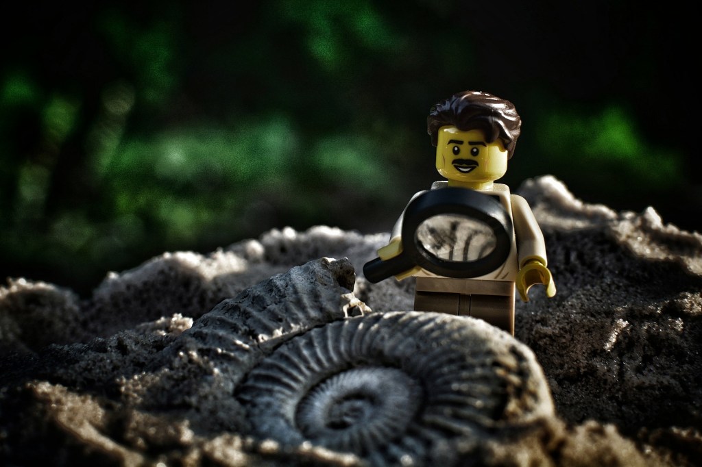 Oud is de amoniet die deze Lego explorer ontdekt zeker… Iets van 65 miljoen jaar… Gevonden in de woeste jungle die ook wel bekend staat als onze voortuin…