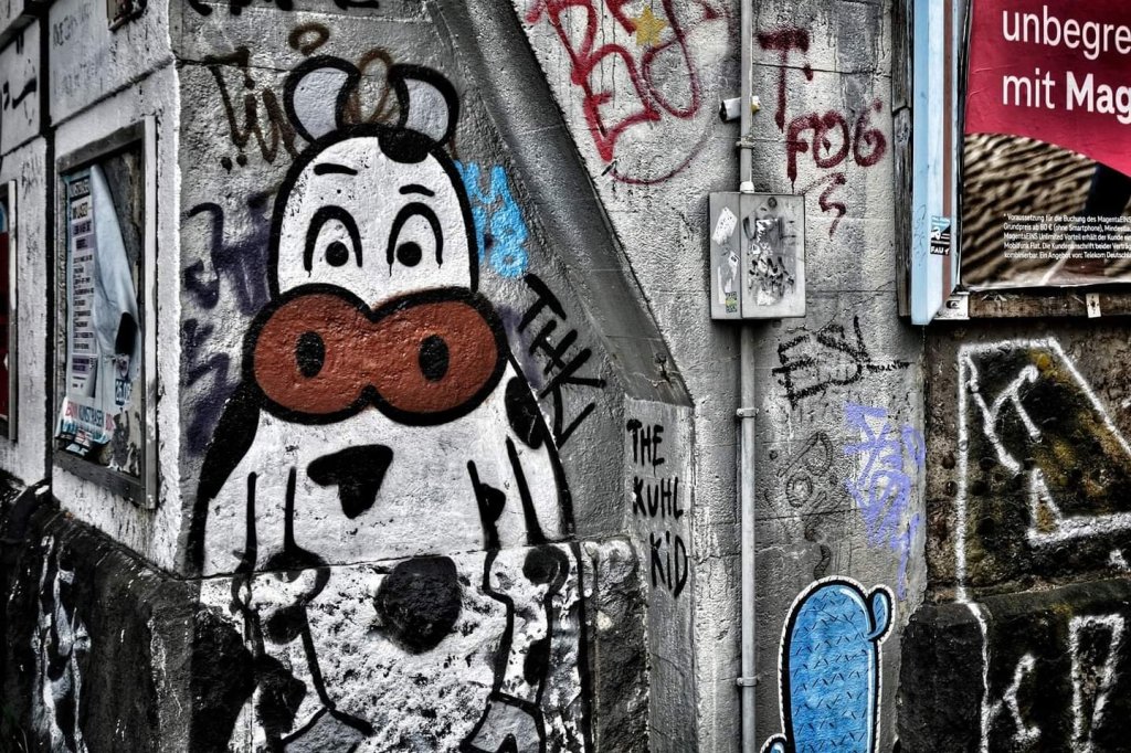 The kuhl kid! Deze grappig deze koe is de afgelopen 11 jaar al op meer dan 300 plaatsen verschenen in Keulen en heeft zelfs een eigen Instagram account! Maar wie hem op de muren spuit is nog steeds niet bekend!