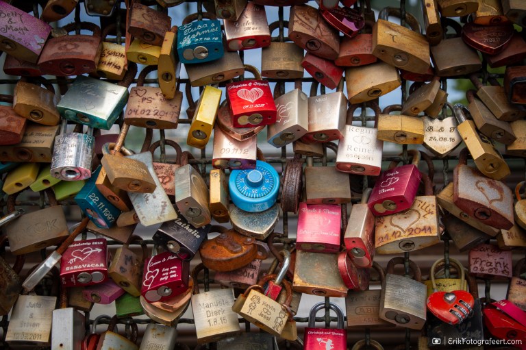 ‘s-Avonds ben ik nog naar de “slotjesbrug” gelopen want daar ik wilde ik graag wat foto’s van hebben. Dat is de spoorbrug naar het centrum en die hangt vol met vele duizenden “liefdesslotjes”! Een mooi gezicht!