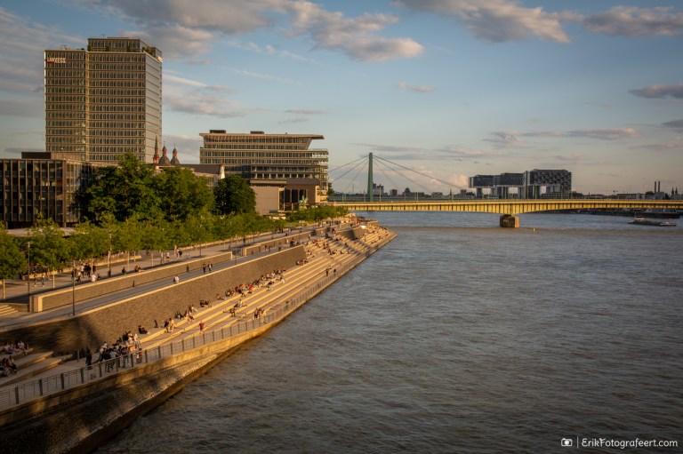 Sowieso was het uitzicht over de Rijn fraai en daar dachten veel mensen zo over want het was best druk met relaxende mensen aan de oevers aan de rivier!