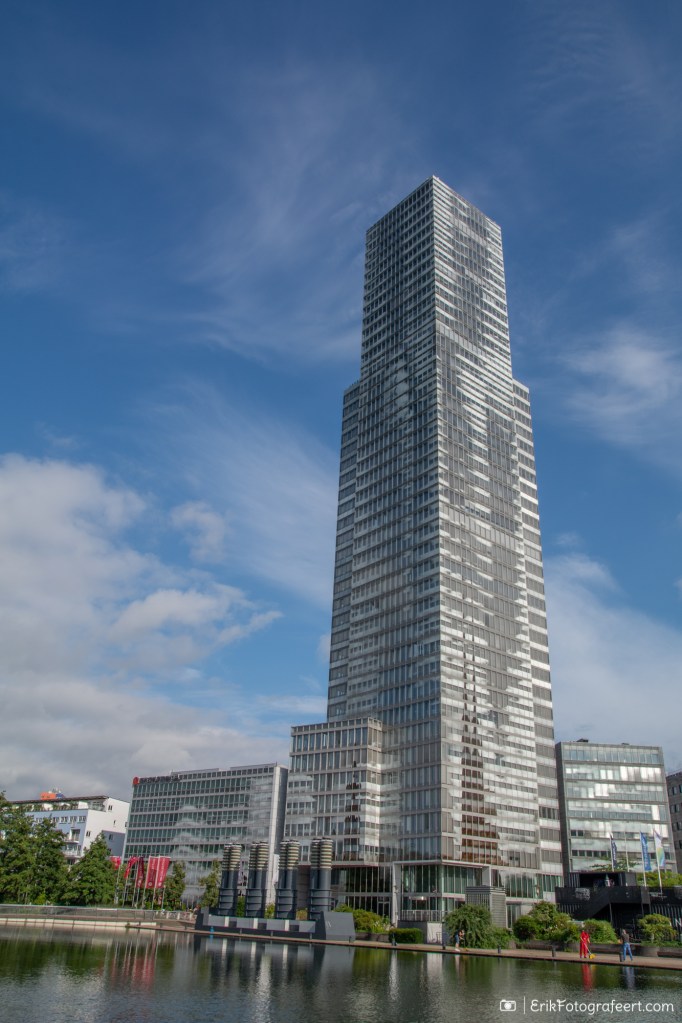 Omdat de trein was uitgevallen door een “Unwetter”, moesten moesten Jasper en ik een stukje verder lopen om in de wijk te komen. Dat was geen straf want onderweg was al genoeg te zien! Zo hadden we o.a. goed uitzicht op de oude televisiemast en kwamen langs een aantal interessante gebouwen. Al vond Jasper de meerkoet in de vijver veel leuker 😉