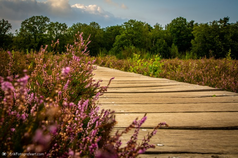 Vandaag tijdens het paardrijden van Emma speciaal naar het vlonderpad in het Mastbos gegaan om de bloeiende heide te fotograferen. Nou, dat viel best tegen… Zeker niet de paarse vlakte waar ik op gehoopt had! Maar ik heb wel lekker kunnen oefenen met mijn statief, afstandsbediening en hyperfocale afstand 🙂