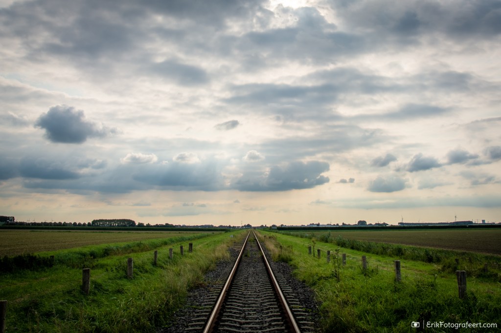 Fototechnisch is dit een erg goede leidende lijn die prachtig doorloop tot aan de horizon. Je kunt hem nog sterker maken door hem onder in de hoeken te laten beginnen of door hem diagonaal door het beeld te laten lopen. Ondanks je uitleg dat het spoor bijna niet gebruikt wordt, probeer ik dit soort foto’s toch te ontmoedigen. Niet iedereen leest je verhaal en krijgt het idee toch dit soort foto’s te gaan maken, met alle gevaar van dien…