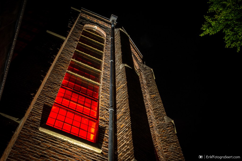 Wat er in deze kerk in Klundert gaande was weet ik niet maar het leverde wel een mooi plaatje op met die rode ramen! Bewust van onderaf en schuin genomen om een wat speelser beeld te krijgen. Heb er ook één van de hele kerk maar die is, ondanks de daarin sterk aanwezige symmetrie, een stuk minder spannend. F9, 17mm, ISO100, 4s.
