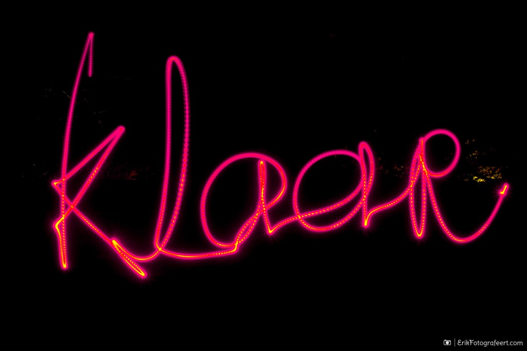 Zo, wat viel dat tegen om een simpel woord leesbaar weg te zetten… Je wilt niet weten hoe vaak ik het heb geprobeerd. Maar goed, deze versie is volgens mij én goed leesbaar, én mooi scherp. Ik heb een achterlichtje van een fiets gebruikt. Blij met mijn afstandsbediening en de BULB mode op mijn camera! In Lightroom de kleurtemperatuur wat aangepast omdat ik dat mooier vond.