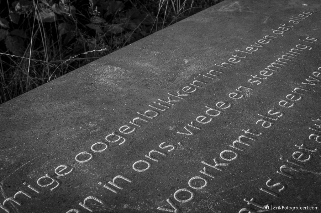 Een deel van een uitspraak van Vincent van Gogh op een bankje in natuurgebied “de Pannenhoef”